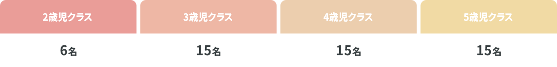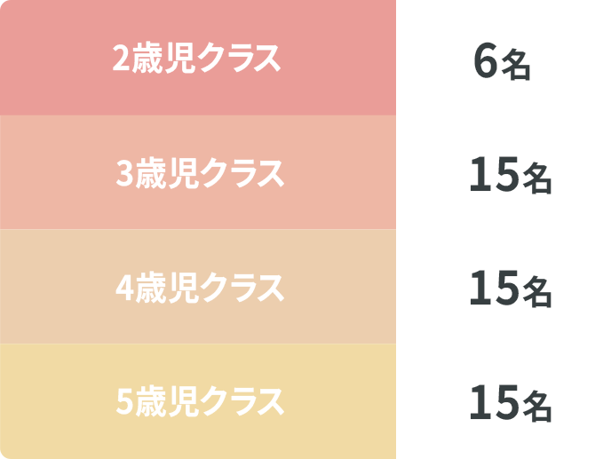2歳〜5歳児を対象に、各年齢ごとに以下のようなクラスを設けます。